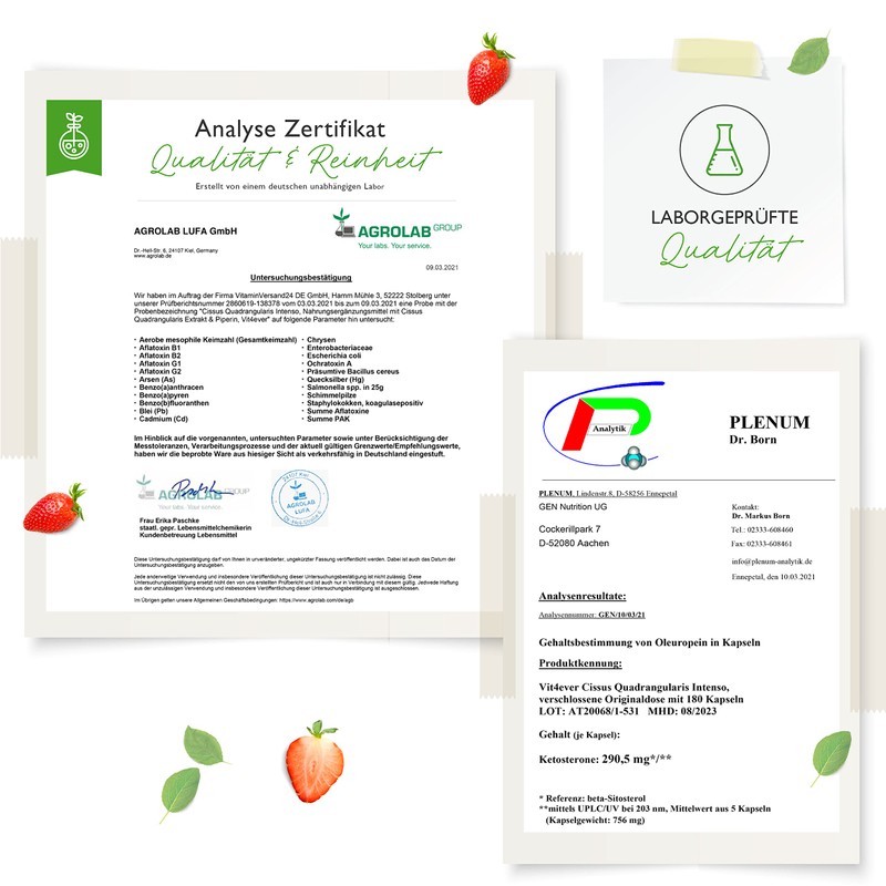- Natural extract: For our capsules we use real Cissus Quadrangularis extract with a standardised proportion of 40% ketosterones. One capsule contains 290 mg of pure ketosterones. A gentle and elaborate extraction process is used to extract the raw material to protect the valuable plant substances.