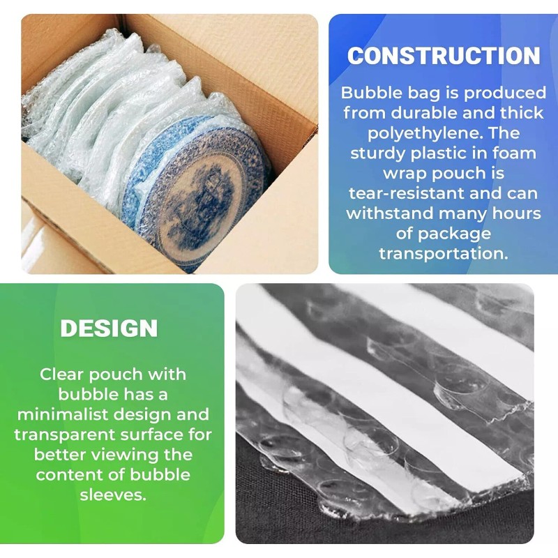 - CLEAR WRAP BAG——Packaging is as simple as inserting your product into the bubble pouches wrap. The smooth inner wall of the bubble makes it easy to insert and remove the product. Good clarity and easy identification of the package contents