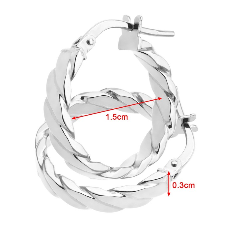Citerna Women's 9ct White Gold Flat Striped Design Hoop Earrings