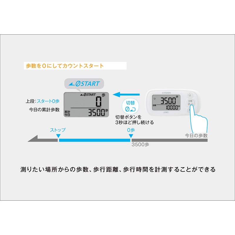 - Display Contents: (Steps per day) up to 9999 steps, (Time) 24 hour (hours/minute), (Memory) 7 days / maximum walking date / total total total total total (total total: trial start date / cumulative days / total steps / total distance)