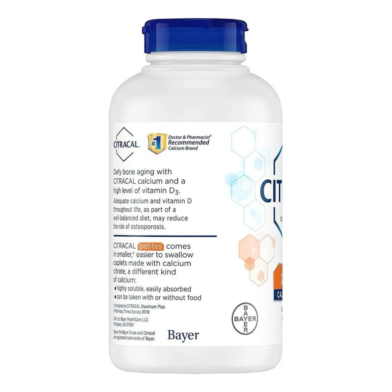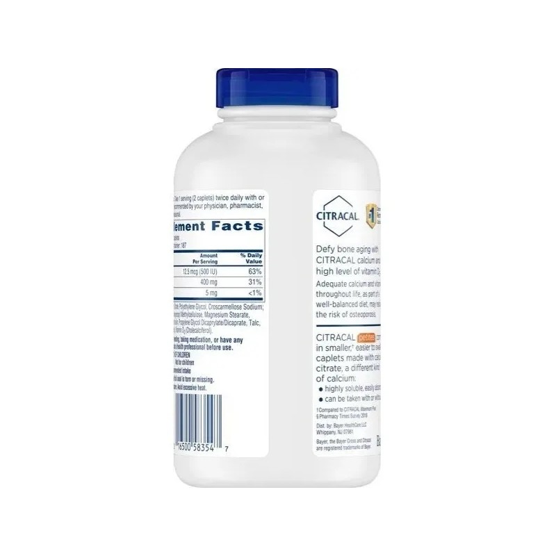 Citracal Petites Contiene 400 Mg De Calcio Y 500 Ui De Vitamina D3 Por Porción Para Ayudar A Lograr Una Salud Ósea Óptima Y Reducir El Riesgo De Osteoporosis, Contiene 375 Cápsulas.