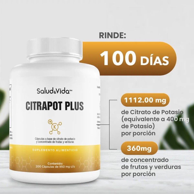 - Citrapack Plus Alto contenido: 420 cápsulas en total. Alta Potencia: 2000 mg de Citrato de Magnesio y 1112 mg de Citrato de Potasio por porción. Equivalentes a 300mg de magnesio elemental y 400mg de potasio elemental. Eficiencia Superior en Dosificación: 4 veces más Citrato de Magnesio por porción comparado con productos estándar. 2 veces más Citrato de Potasio por porción, maximizando los beneficios. Volumen Excepcional: 3 veces más contenido total en gramos, asegurando una mayor cantidad de producto. El doble de cápsulas totales en comparación con alternativas comunes. Además, cuenta con "Consulta de clasificación" emitida por COFEPRIS, lo cual acredita su denominación como suplemento alimenticio, sin uso de ingredientes prohibidos o dosis excesivas que podrían afectar tu salud. Aviso legal