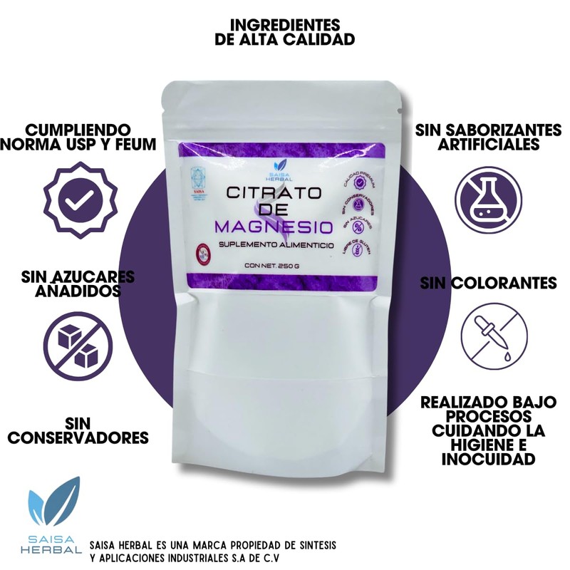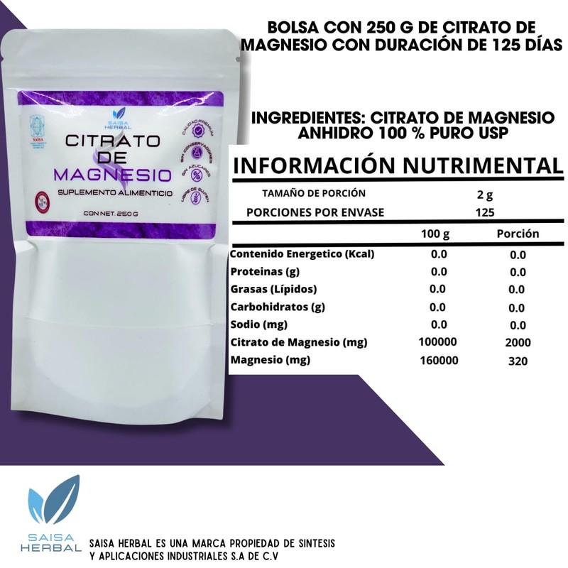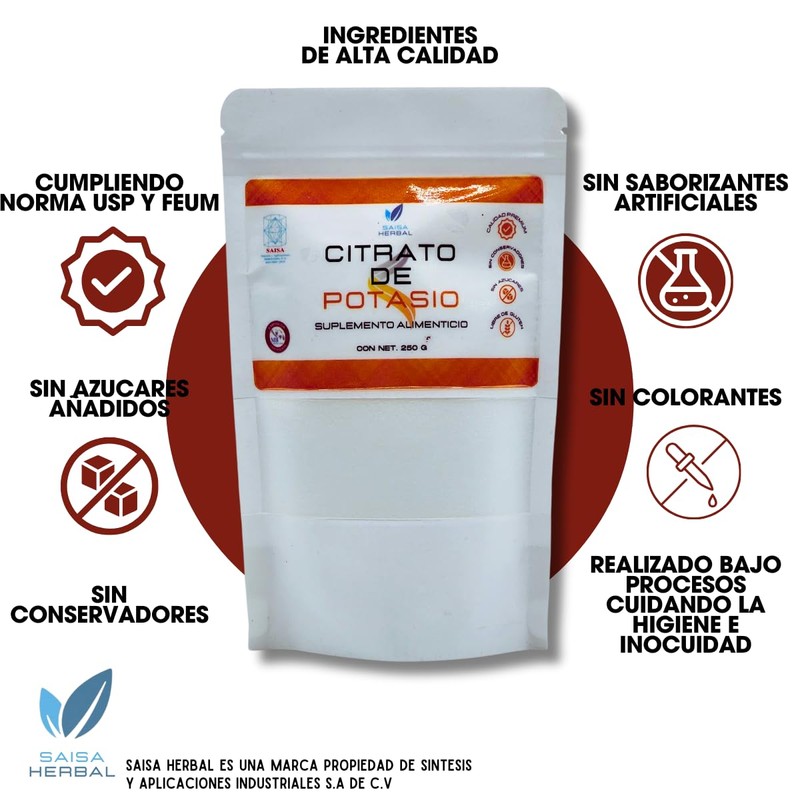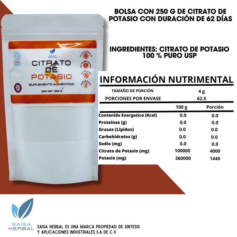 Citrato De Magnesio 250 G. Y Citrato De Potasio 250 G. 100% Puro SAISA HERBAL