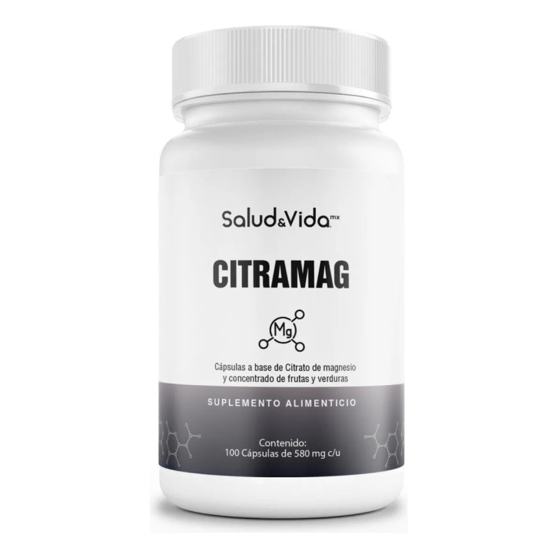Citrato de Magnesio 500mg - Uno al día - 100 Cápsulas de Fácil Absorción - CITRAMAG S&V - Sin Gluten y Sin OMG