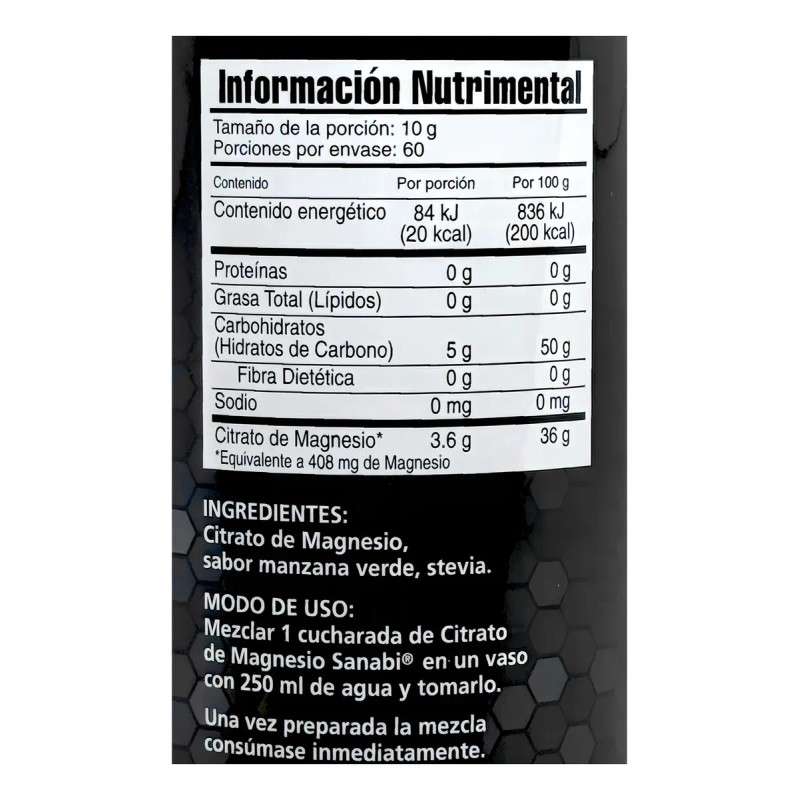Citrato De Magnesio 600 G Manzana Verde Sanabi