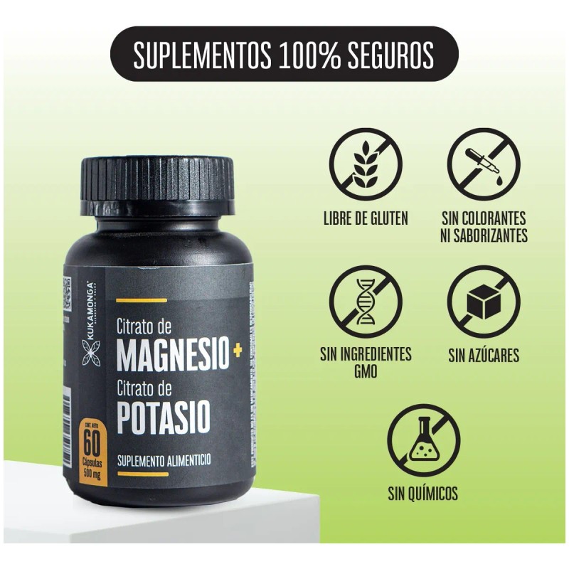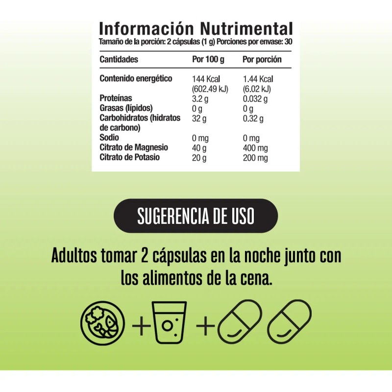 Citrato De Magnesio + Citrato De Potasio - 60 Cáps Sin Sabor