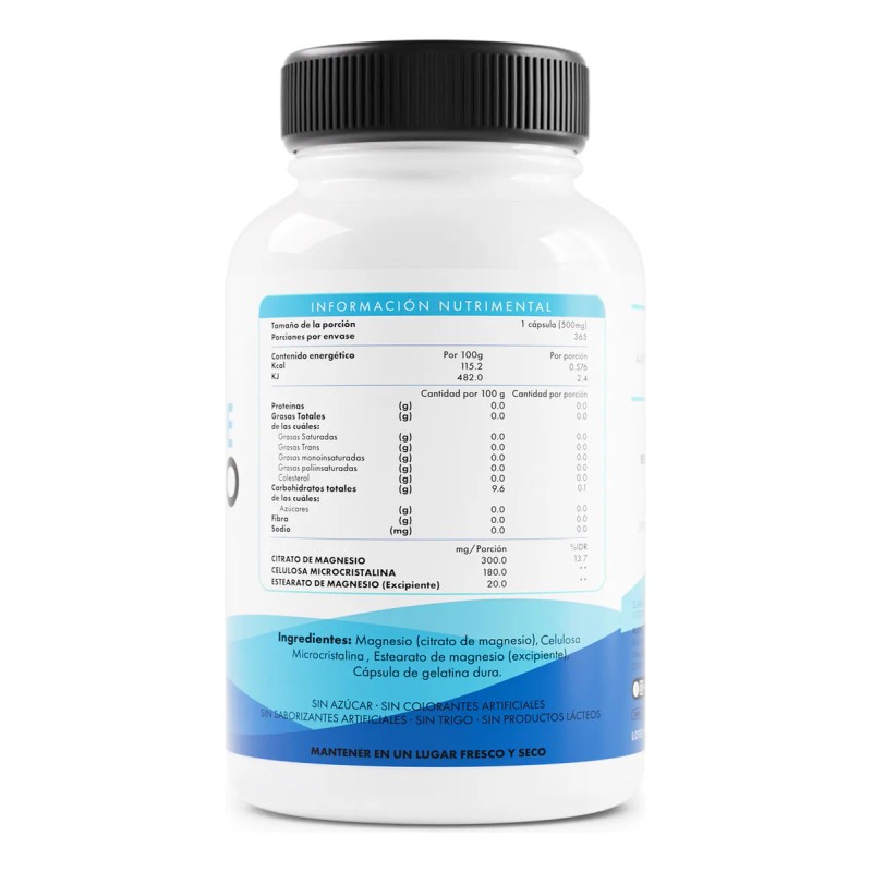 Citrato De Magnesio De 365 Cápsulas | Mantra Nutrition Sabor Sin Sabor
