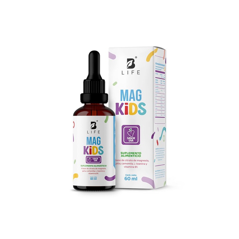 Título: Citrato de Magnesio de 60 ml. 2 meses de consumo. Adicionado con Teanina, Vitamina B1 y Gaba para niños. Sabor Uva. Kids Mag. B Life.