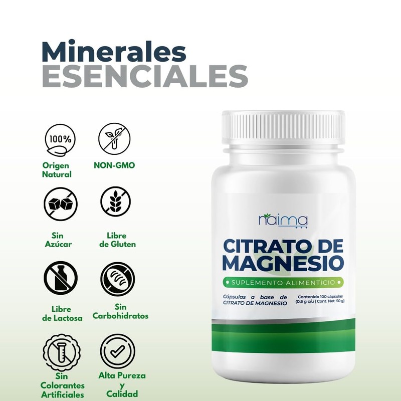 Citrato de Magnesio e Inositol 500mg en cada cápsula - Ingredientes Naturales (100 Cápsula por Frasco)