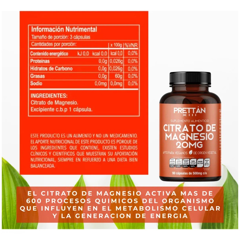 Citrato De Magnesio Suplemento En Capsulas 500mg Prettan