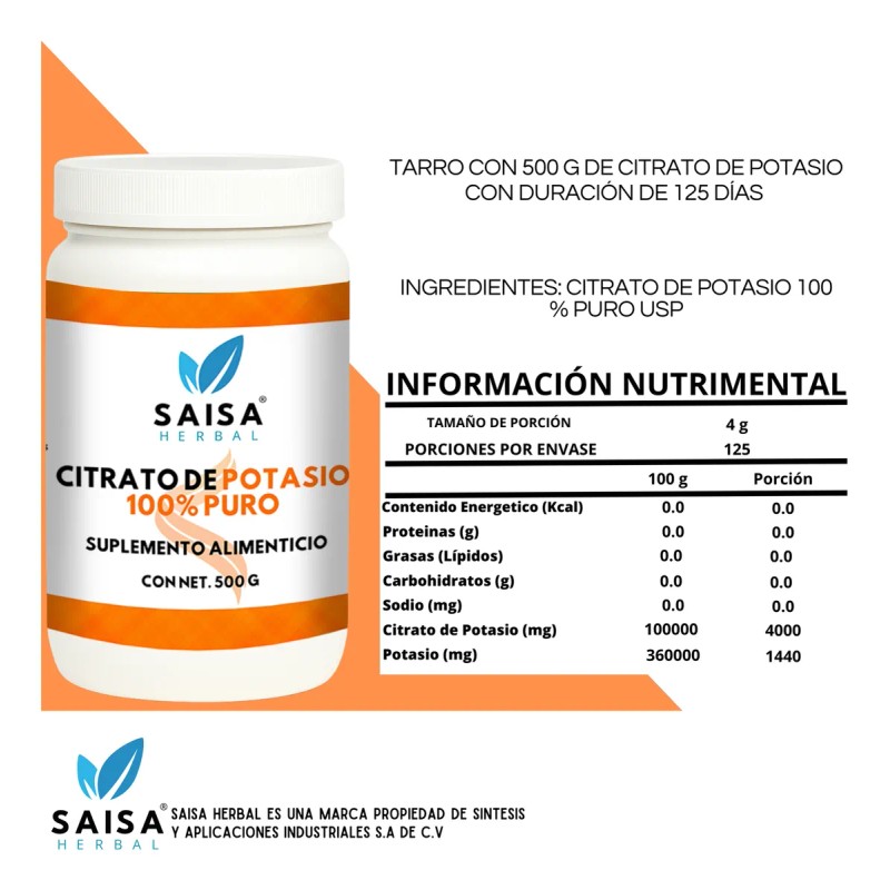 Citrato De Magnesio Y Citrato De Potasio Pack 500 G C/u. Natural