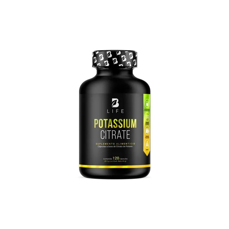 ¡Eleva tu rendimiento deportivo con Potassium Citrate B Life! Cada porción está diseñada para aportar 800 mg de Potasio (Provenientes de 1000 mg de Citrato de Potasio) en comparación con otras presentaciones que brindan únicamente 99 mg de este ingrediente valioso para tu organismo. Contiene 120 cápsulas.