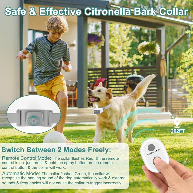 Citronella Bark Collar for Dogs, Spray Bark Collar [with Remote Control] IPX4 Waterproof, 262ft Citronella Dog Training, Suitable for S/M/L Dogs