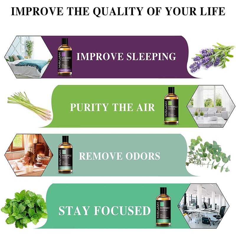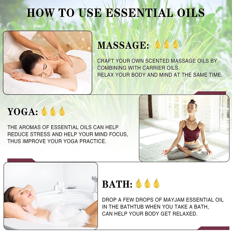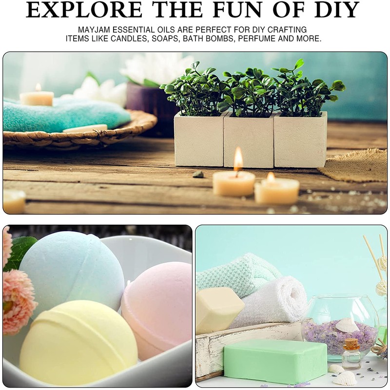 - Widely Use: Except to be used in aromatherapy diffusers, MAYJAM essential oils could also be used in making soap, candle, bath bomb, etc. You can enjoy yourself in crafting at the same time.