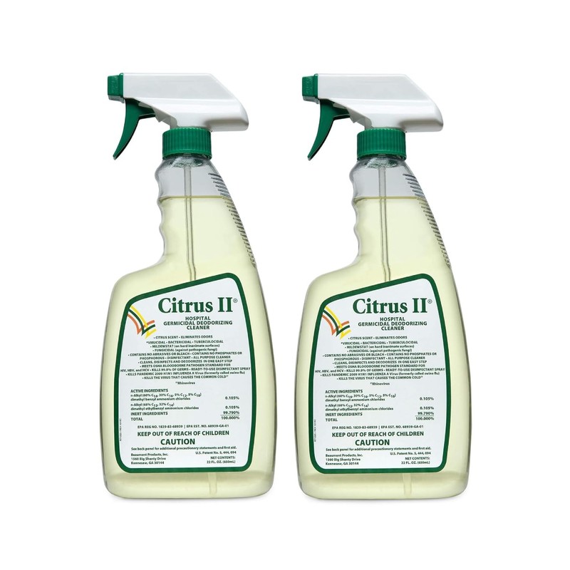 Citrus II Hospital Germicidal Deodorizing Cleaner - Fresh Citrus Scent - Disinfecting Spray- for Home, Hospital and Office Surfaces and Supplies - 22 Fl Oz - Pack of 2
