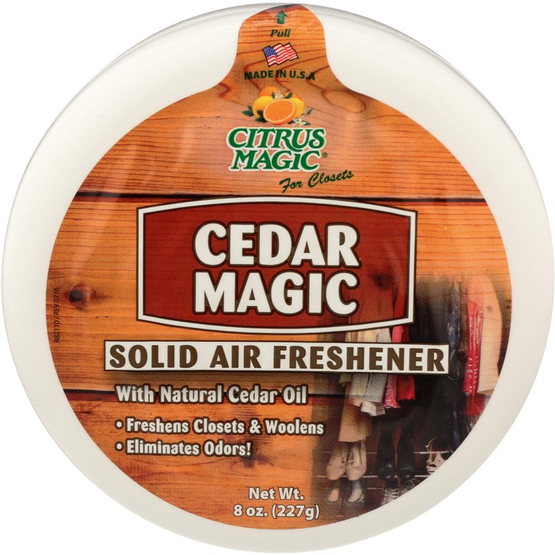 • Turn any closet into a cedar closet! Cedar Magic Solid Odor Absorber has all the freshness you love with Citrus Magic, but with the added power and fragrance of real cedar.