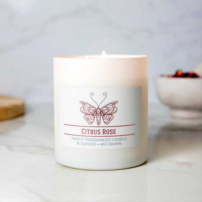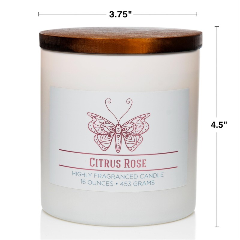 - Burn: Featuring two premium cotton wicks, our Citrus Rose soy wax blend has an approximate burn time of 60 hours.
