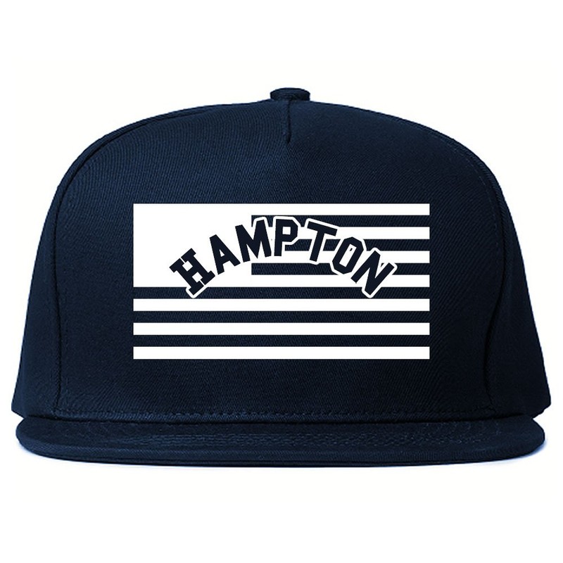 - PRODUCT: Our City Of Hampton with United States Flag Snapback Hat Cap Navy Blue is a classic style basbeball cap with a flat brim featuring a unique graphic print design on front by clothing brand KINGS OF NY.