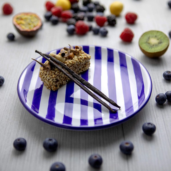 City to Cottage® - Ceramic Plate 20 cm | Blue/White Stripes | Handmade | Small Dinner Plate | Breakfast Plate | Saucer