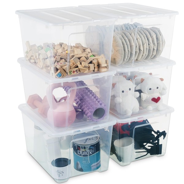 - LARGE CAPACITY: Package includes 6 x 54 quarts storage bins measuring 22 "L x 16 "W x 12 "H, perfect for large storage needs in closets, garages, bedrooms, basements, offices, and more