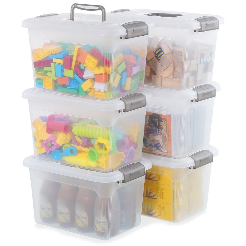 Citylife 6 Packs 8.5 QT Storage Bins with Lids Clear Plastic Bins with Grey Handle Stackable Storage Containers for Organizing