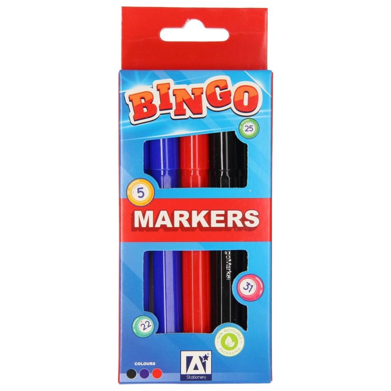 citystores® Bingo Dabber Pen Marker Blue Red Black Tip Easy Grip Long Lasting 3 Pack