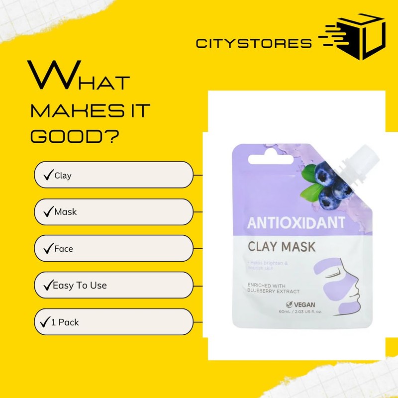 Citystores® Clay Mud Mask Antioxidant Enriched with Blueberry Extract for Glowing Skin, 60ml