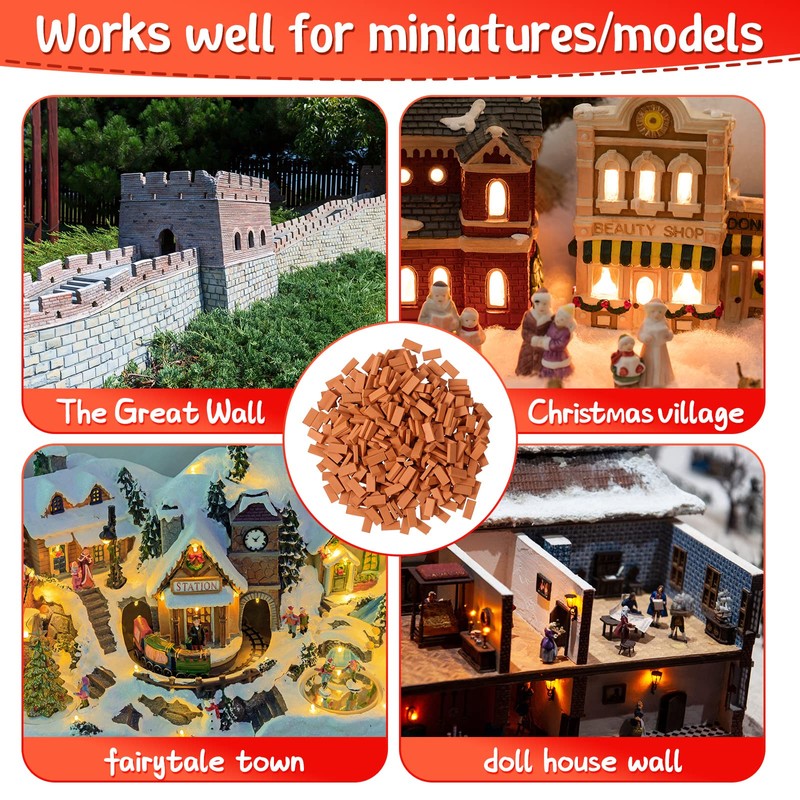 - Mini size: each tiny red bricks measure approximately 11 x 6 x 2.5 mm/ 0.43 x 0.24 x 0.1 inches, which is suitable for 1:35 scale doll house, allowing you to coordinate with glue and small tweezers to finish your miniature garden, tiny village or mini house