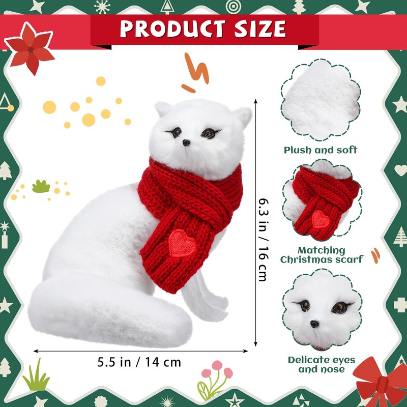 Civaner Arctic Fox Plush Christmas Pet with Scarf Gifts Stuffed Animal 8 Inch Realistic Christmas Arctic Fox Gifts for Party Holiday Birthday