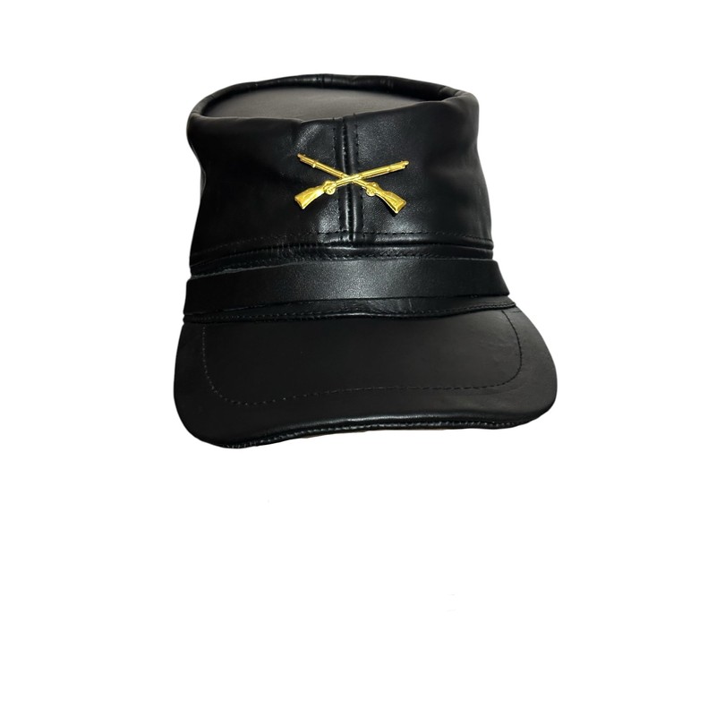 - Civil WAR Real Cowhide Black Leather KEPI-HAT