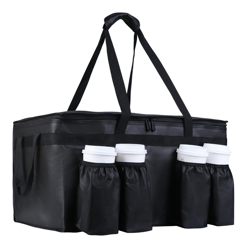 CIVJET Insulated Food Delivery Bag with Cup Holder, XX-Large Insulated Grocery Bags with Zippered Top, Cooler Bags with Drink Carrier, Food Carrier Catering Bag, Commercial Food Warmers, Black