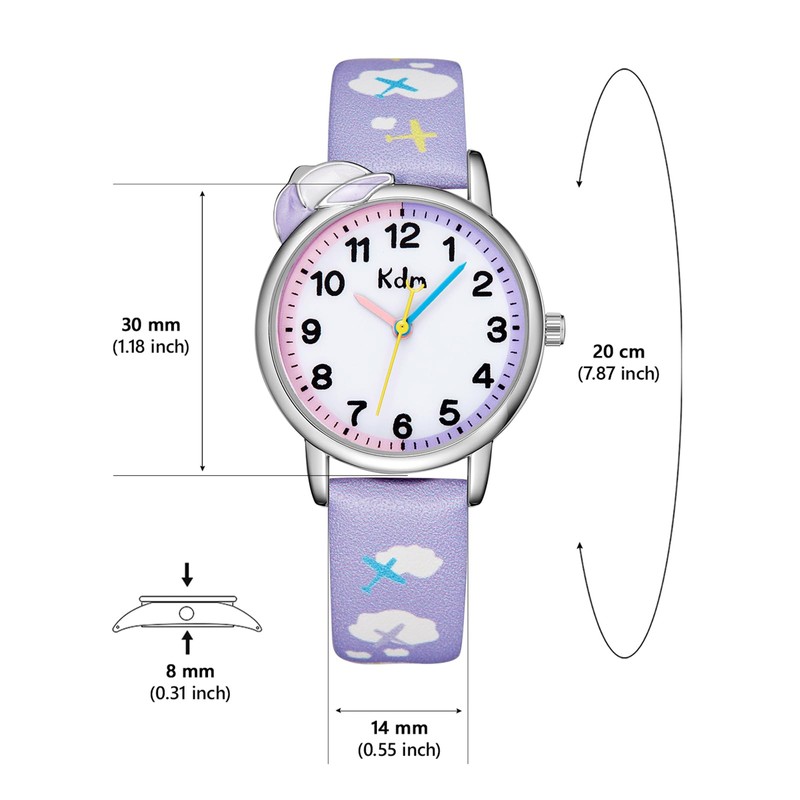 KIDS FRIENDLY This kids watch has a case diameter of 30mm and is equipped with easy-to-read numbers and colorful hands to help children learn to read the time easily.
