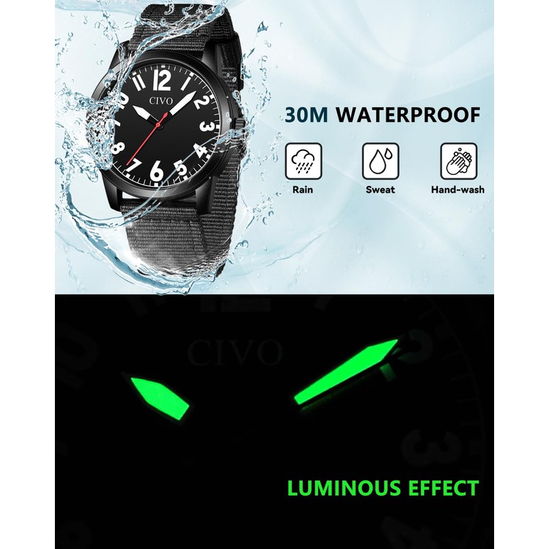 - EASY READABLE NUMBER DESIGN: This CIVO men's watch with 42mm dial features clear and easy to read white numerals for better visibility. Absorbs enough light source to be easy to read even in low light environments