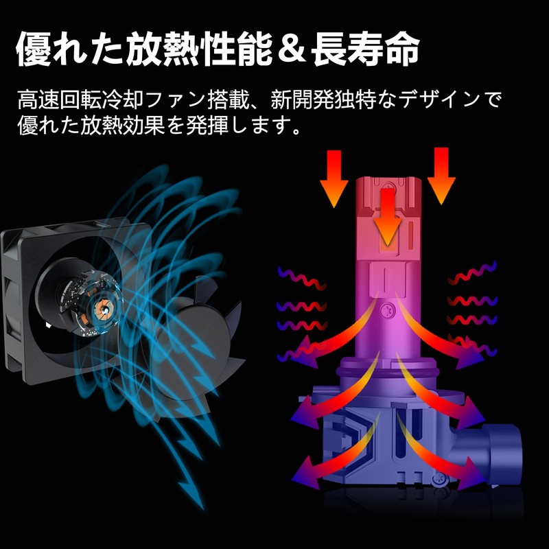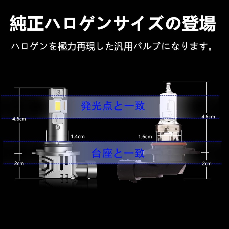 • 【純正ハロゲンサイズ登場】インバーター一体型のコンパクトサイズ。 まるで純正ハロゲンをそのまま交換しているような装着感を実現。簡単ポン付けで装着が更に楽になりました。本体は高熱伝導性6063航空用アルミニウム合金素材の採用して、独特な高熱伝導率銅管搭載、新開発小型冷却ファン内蔵で排熱性能増加することで、優れた放熱効果を発揮します。LEDチップの使用寿命を長引かせます。ハロゲンより高照度、省電力、長寿命の逸品です。