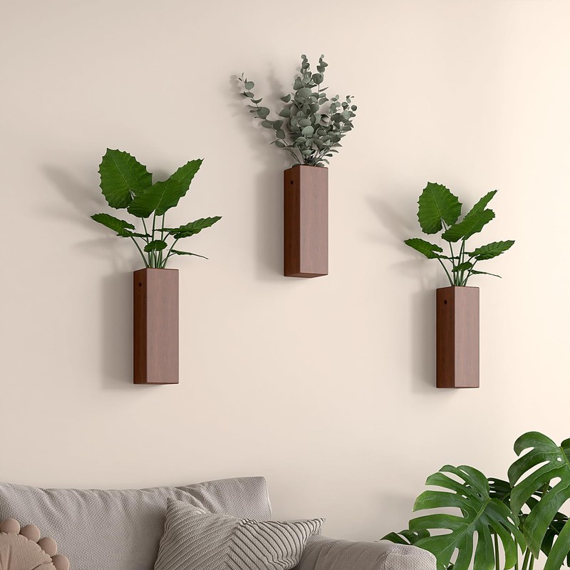 - Style: This wall mount wooden vase artfully merges modern elegance with rustic warmth. Boasting a minimalist wooden design, it infuses your wall decor with a touch of contemporary chic while exuding an understated, earthy charm.