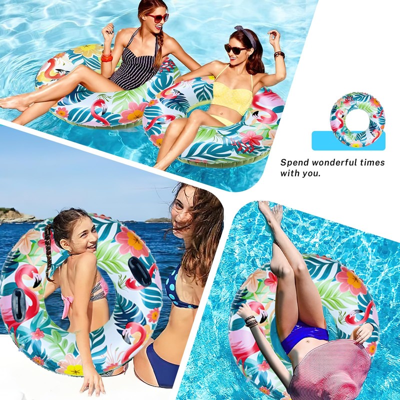 - Durable material: the swimming ring is made of thickened PVC material, which is leak-proof and puncture-resistant. Non-slip handles are attached on both sides that make it easier to grip and maintain balance when immersed in the water, preventing tipping over. This improves safety and comfort for adults during use.