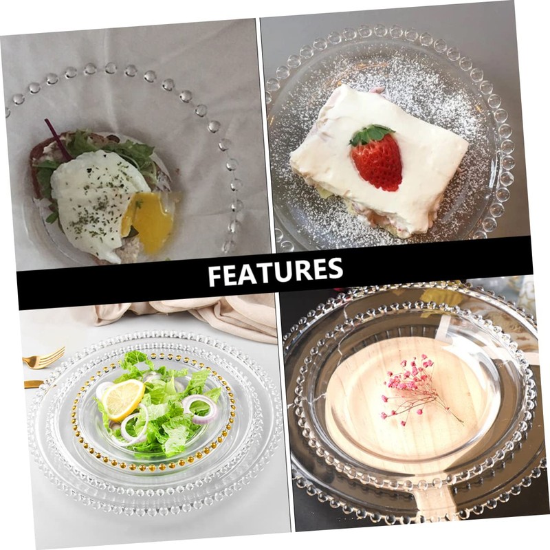 CIYODO 1pcs Pearl Edge Glass Plate Elegant Fruit Salad Dish for Home Tableware Food Container for Everyday Use Creative Design for Parties Casual Gatherings