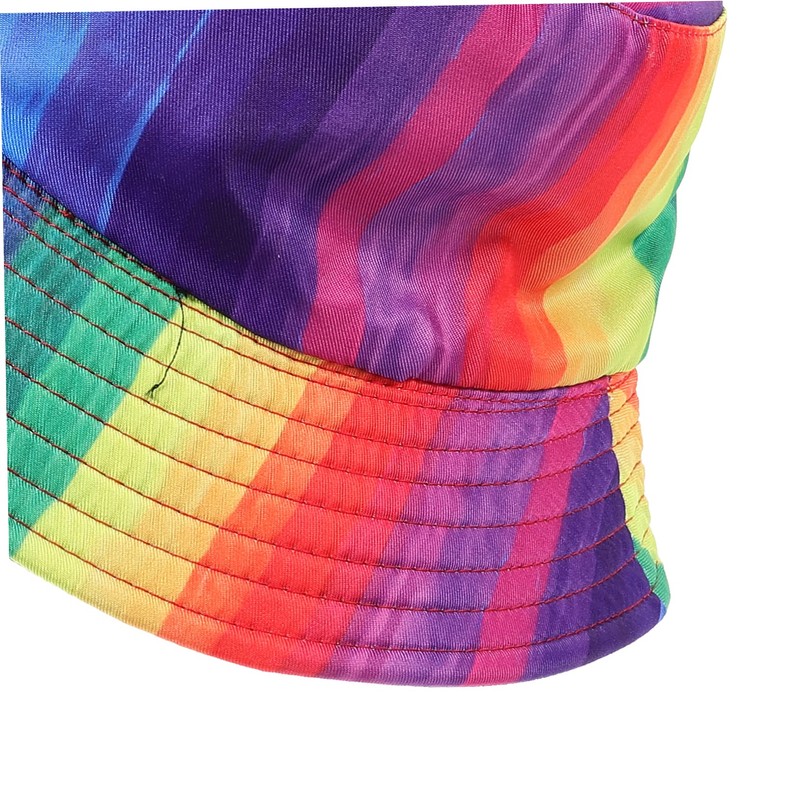 -Material:Polyester rainbow bucket hat for party