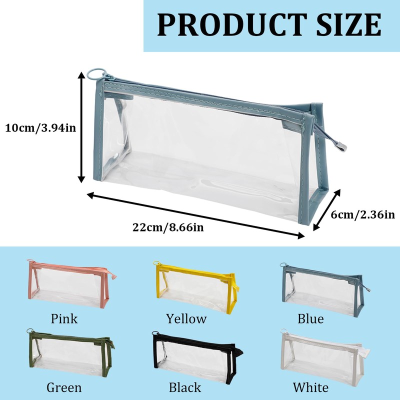 CIZITBE 6 Pcs Clear Pencil Bag with Zipper, Transparent Pen Pouch, Multifunctional Travel Toiletry Cosmetic Makeup Bag, Stationery Organizer
