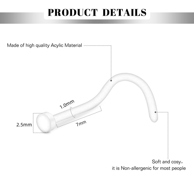 Cizme 20pcs Clear Acrylic Nose Screw Stud 18G 7mm Nose Bar Retainer Bioflex Flexible Hide Piercing