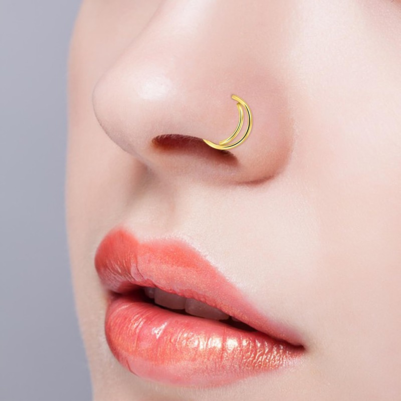 Cizme 6pcs Stainless Steel Double Nose Ring Bicyclic for Single Piercing 20G 8mm Silver Rose Gold Golden Spiral Nose Hoop Nostril Piercing Jwewllery