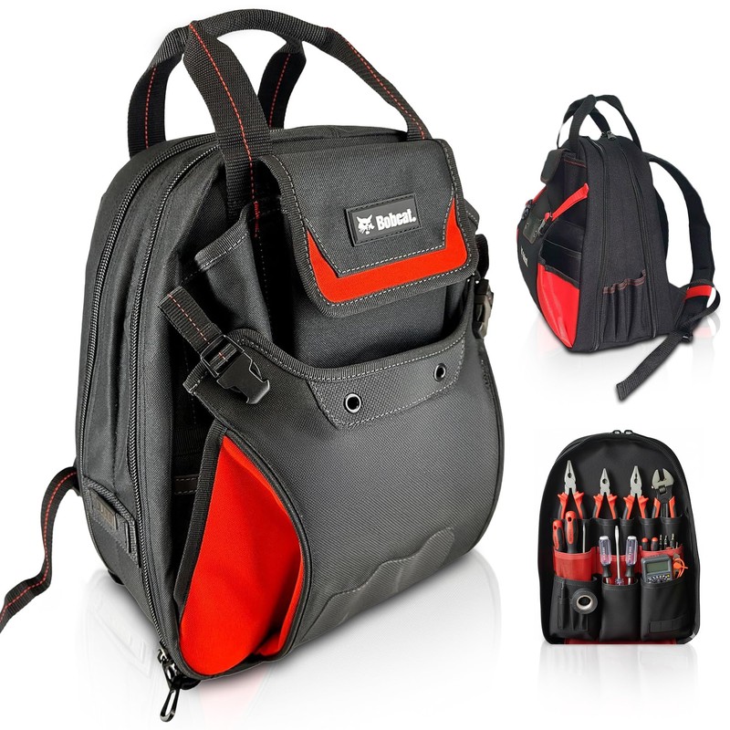 Bobcat Tool Backpack Heavy Duty – Technician Backpack for Electrician, HVAC, Construction, and Maintenance – Durable Tool Bag with Smart Storage – Black/Red