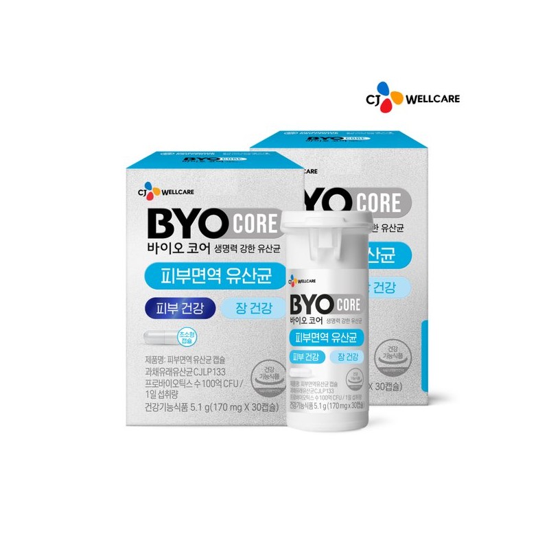 CJ Wellcare 바이오코어 피부면역 유산균 캡슐형 30캡슐 2개 BioCore Skin Immune Probiotic Capsules 30 Capsules x 2