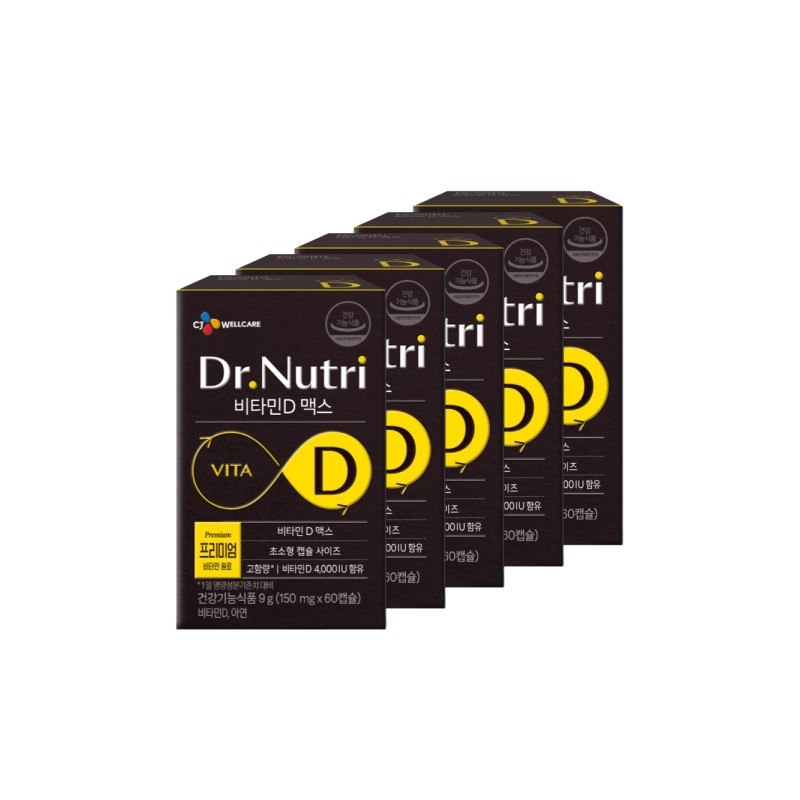 CJ Wellcare Dr. Nutri Vitamin D Max 150mg / CJ웰케어 닥터뉴트리 비타민D 맥스 150mg×60캡슐 5박스 건강기능식품 면역기능증진 뼈건강 스승의날 선물, 60개, 5개
