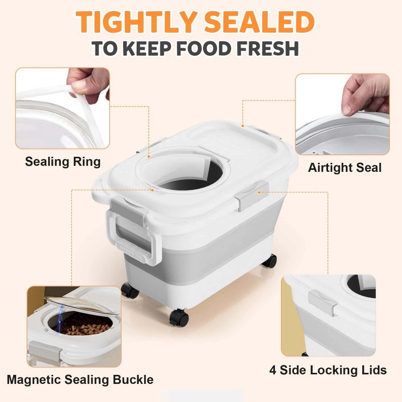 CJC 23lbs Collapsible Dog Food Storage Container Folding Food Container With Lid US