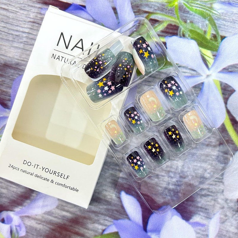 - Fake Nails Design: Our artificial nails use stars,moon, blue starry sky smudge design, fashion and simple design style, give you unique feeling, pretty and comfortable press on nails will give you good mood and add luster to you