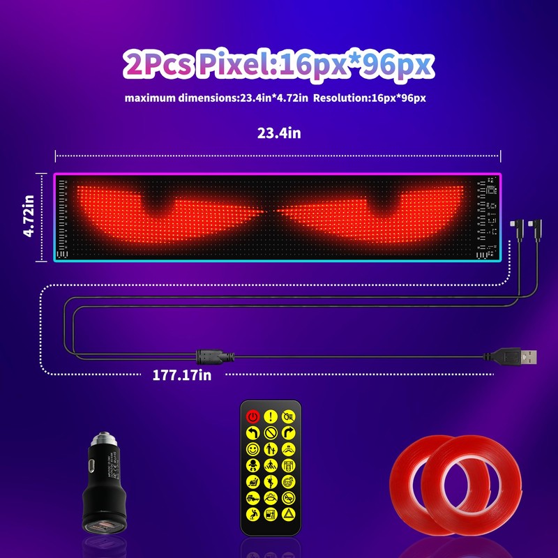 - EFFORTLESS PLUG & PLAY: Get your new car eyes animated LED set up in minutes—no tools, no fuss. Simply attach the light strip and plug the generous 14.7ft USB cable into your vehicle's power source. These interior car lights connect seamlessly to our intuitive app, giving you full control right from your smartphone.