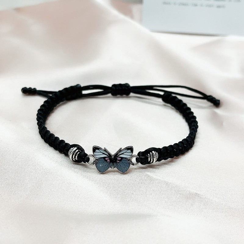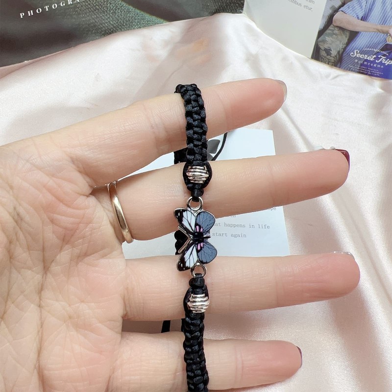 CJIAYUJEW Always believe in yourself Butterfly Bracelet,Adjustable Hand Woven Bracelets,Cute Butterfly Charm Bracelets Matching Bracelet Friendship Couple Bracelets (black+gray, handmade)