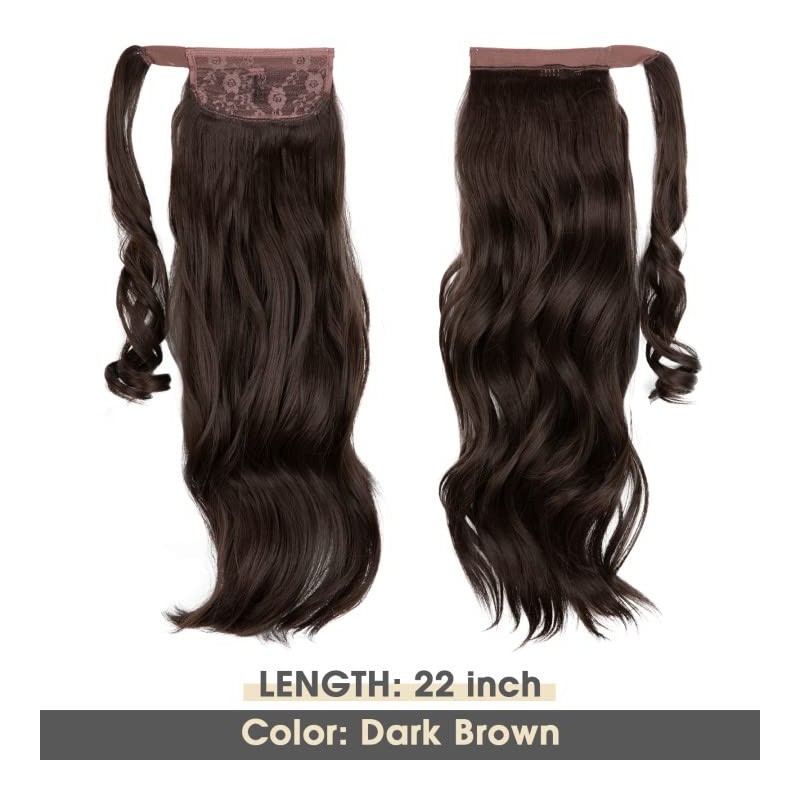 CJL HAIR 22" Ponytail Extension Curly Wavy Long Brown Pony Tail Wrap Around Clip in Hair Extensions Synthetic High Resistant Fiber Faux Hairpiece for Women