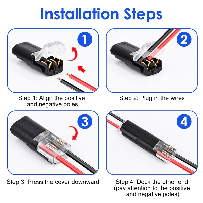 - 【Quick & Easy Connection】: The 2 pin connector allows for quick connection without stripping. Simply insert and squeeze the wires - ideal for effortless connection to your car or other electrical appliances.